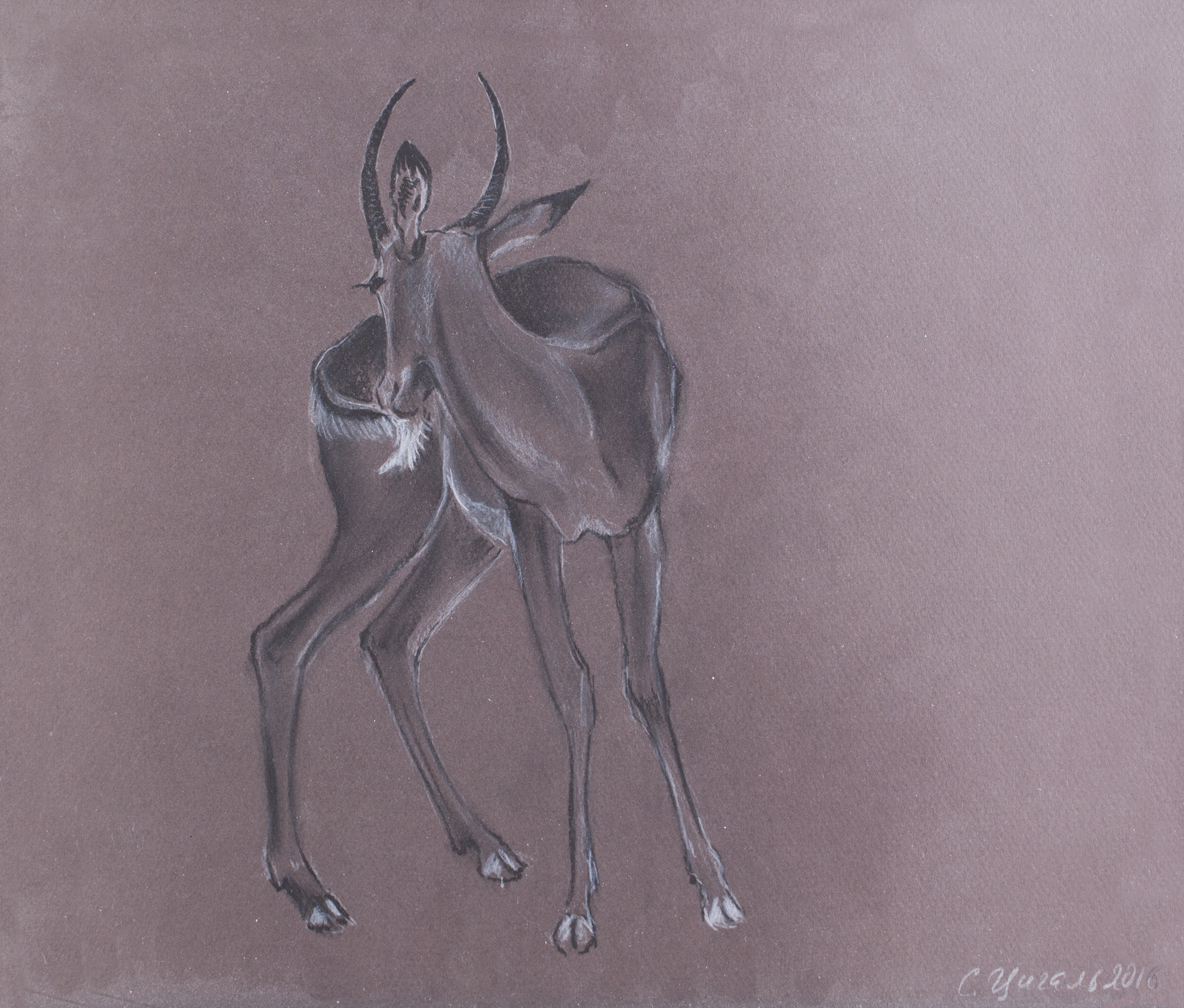 Тонированная бумага, карандаш, белила